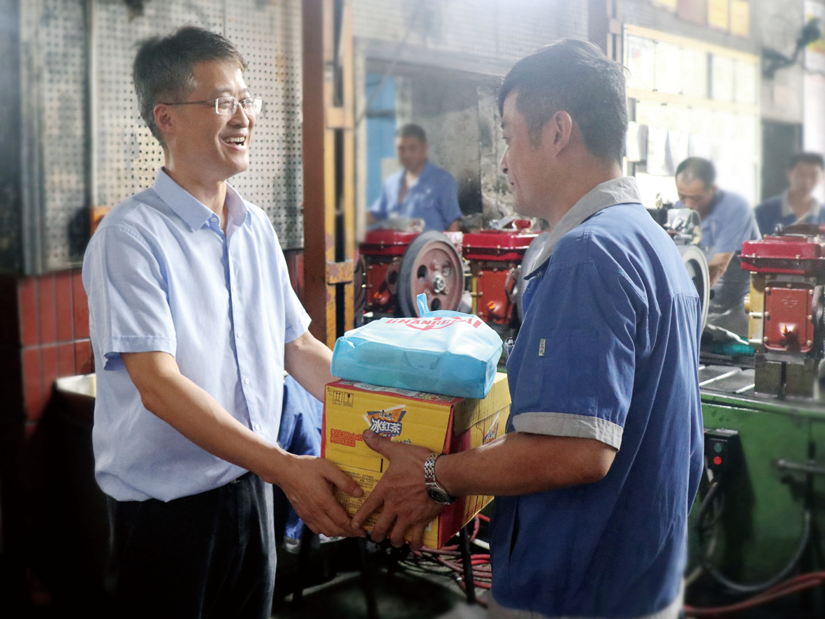 今日常柴訊 今年梅雨時節(jié)過去之后,進(jìn)入“七下八上”季節(jié),常州地區(qū)出現(xiàn)了連續(xù)的高溫天氣,最高氣溫達(dá)35℃以上,節(jié)節(jié)攀升的高溫給大家的工作、生活帶來極大的影響,但是常柴員工仍然堅持奮戰(zhàn)在生產(chǎn)一線,盡心盡職地干好本職工作,為公司持續(xù)穩(wěn)定健康發(fā)展而默默奉獻(xiàn)。8月5-7日,公司領(lǐng)導(dǎo)率領(lǐng)工會、生產(chǎn)部、辦公室、政治部等部門負(fù)責(zé)人,前往各制造廠、子公司以及離退休老干部家中,開展一年一度的夏季高溫慰問活動,把公司關(guān)心送到一線員工、離退休老同志的身邊。