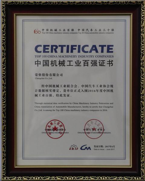 常柴再次榮登中國機(jī)械工業(yè)百強(qiáng)排行榜2017-06-23