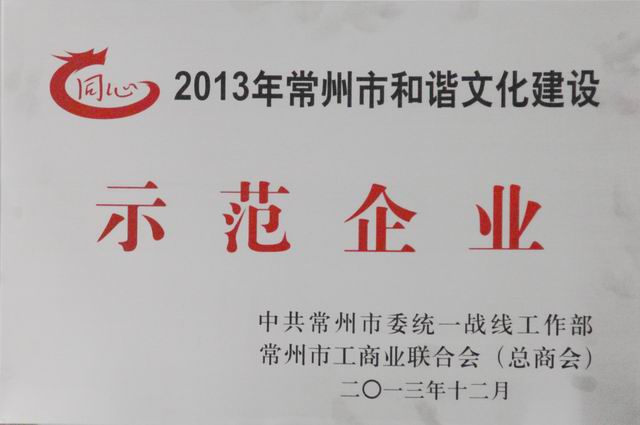 常柴獲2013年常州市和諧文化建設(shè)示范企業(yè)稱號2014-01-03