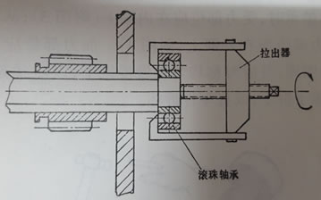 如圖:使用螺旋拉出器拆卸軸承